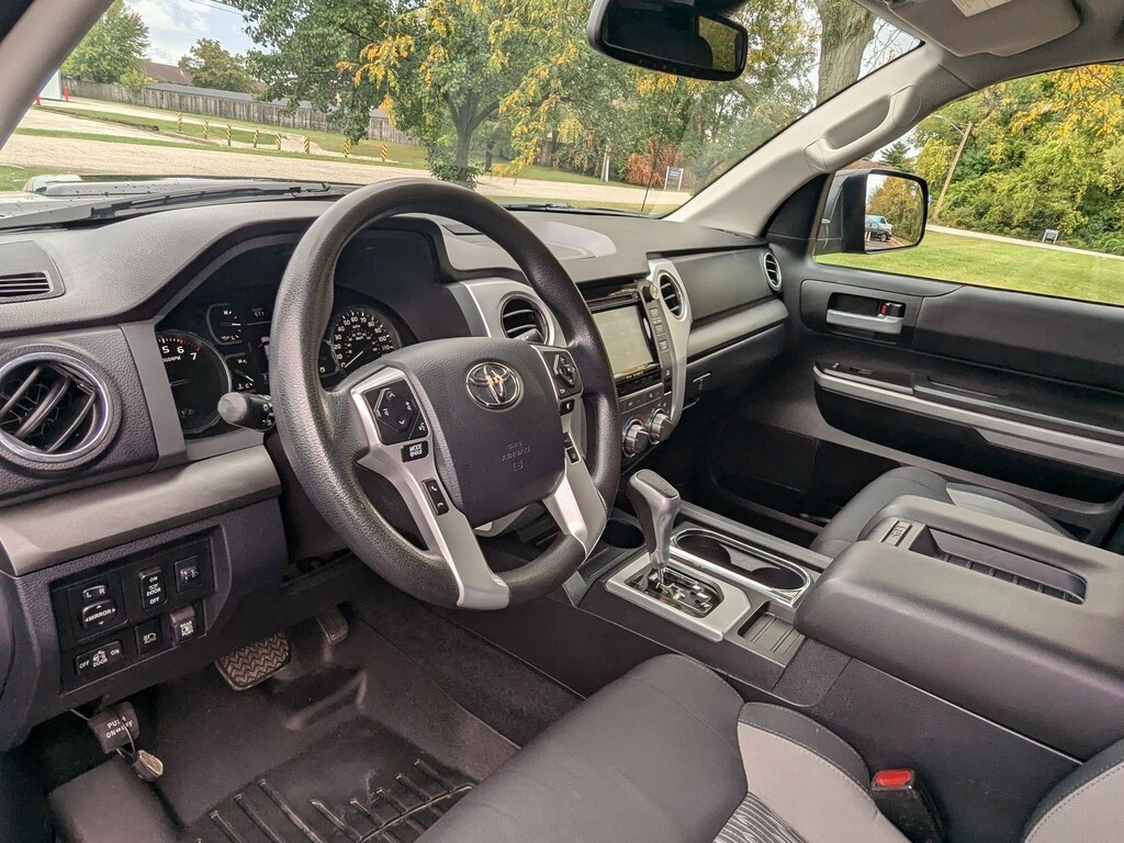 This has been the best truck I have ever driven. 2021 Toyota Tundra SR5 Crew Cab ( Trail Edition package) color is Army Green. The suspension comfortably dampens most bumps and pot holes. The 4 wheel drive works great in the snow. The steering is very lite and easy to turn. In tow/haul, The 5.7L and 6 speed trans pulls my 6000lb trailer with ease. It has a tight turning radius, so backing up my trailer is easy. The interior controls are all easy to reach and intuitive to use. The seats are cloth and comfortable. The interior room in my crew cab is massive. The back seats fold flat to the back wall, leaving a lot of room for hauling things out of the weather. The bed is 5’5” with a dampened tailgate . I have easily hauled plywood and lumber with the tailgate down. I also haul kayaks sticking out out of the bed without a problem. My truck has Toyota safety sense, with that is all of the modern safety features you can imagine. All features, gages and controls are working perfectly. The engine is powerful with some if that V8 engine tone in the cabin. I get an average fuel economy of 15mpg as my daily driver. I also got 18.2 mpg average on a mostly highway trip. I do notice a little body roll/lean when taking turns fast. The halogen headlights and fog lights are good. My truck is stock from Toyota, no changes or additions. This make and model year has impeccable reliability.