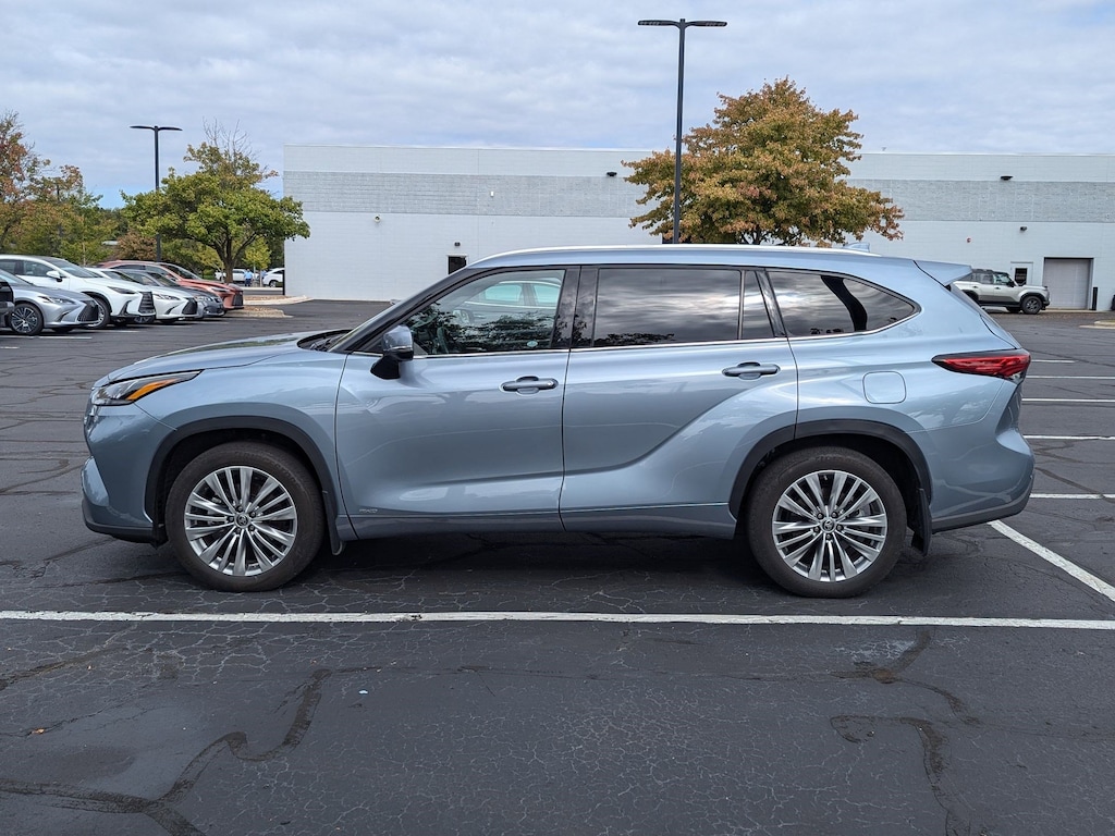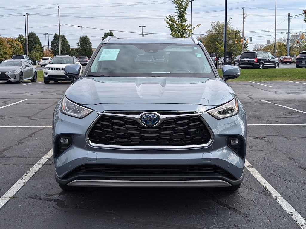 This 2023 Toyota Highlander Hybrid Platinum comes with All Wheel Drive, Panoramic Roof, LED Headlights, Bluetooth Connection, Heated and Cooled Front Seat(s), Woodgrain Interior Trim, Leather Seats, Navigation System, Aerial View Display System, Immobilizer, Cross-Traffic Alert, Rear Collision Mitigation, and much more! Silver exterior, and Gray interior.